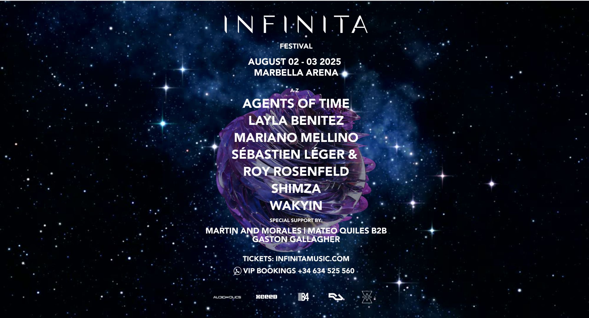 Prepárate para un viaje de dos días de sonido, luz y energía en el corazón de Marbella. INFINITA FESTIVAL llega a la icónica Marbella Arena, fusionando la música electrónica vanguardista con la elegancia mediterránea en un entorno creado para los sentidos.